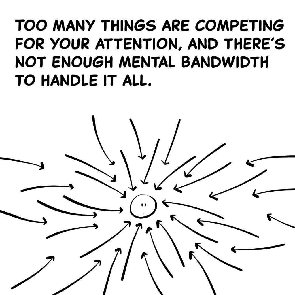 You’re overwhelmed. Too many things are competing for your attention, and there’s not enough mental bandwidth to handle it all. There’s just too much internal and external noise getting in the way.