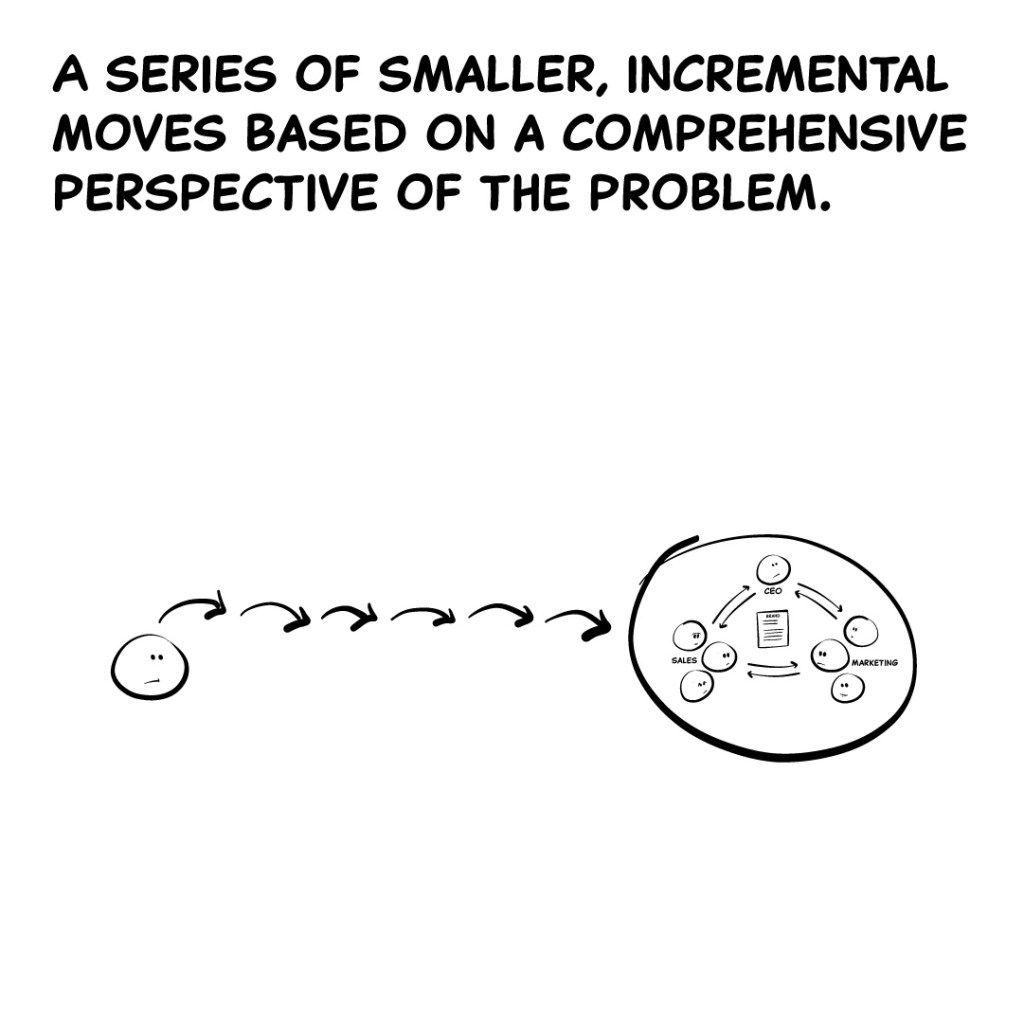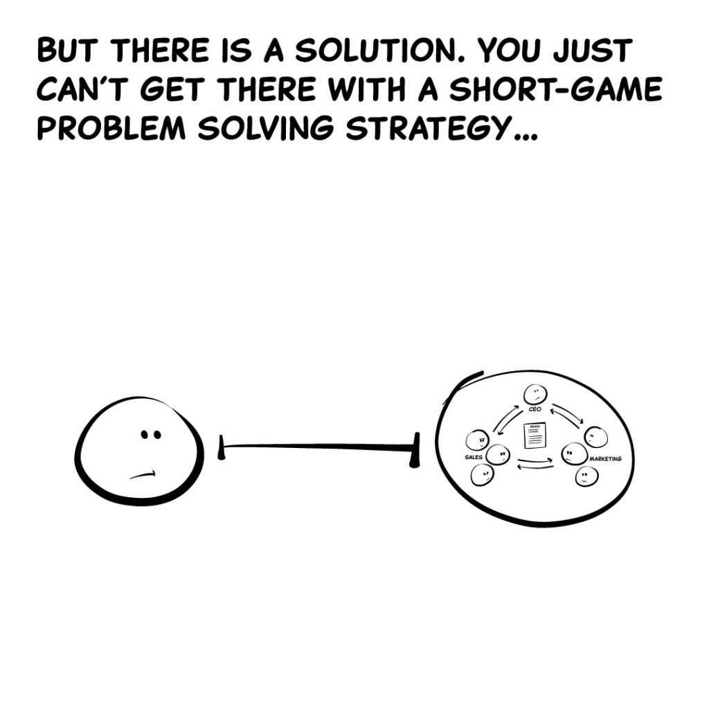 But there is a solution. You just can’t get there with a short-game problem solving strategy—one or two big moves based on your version of how things should be.
