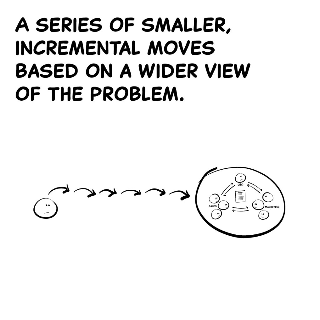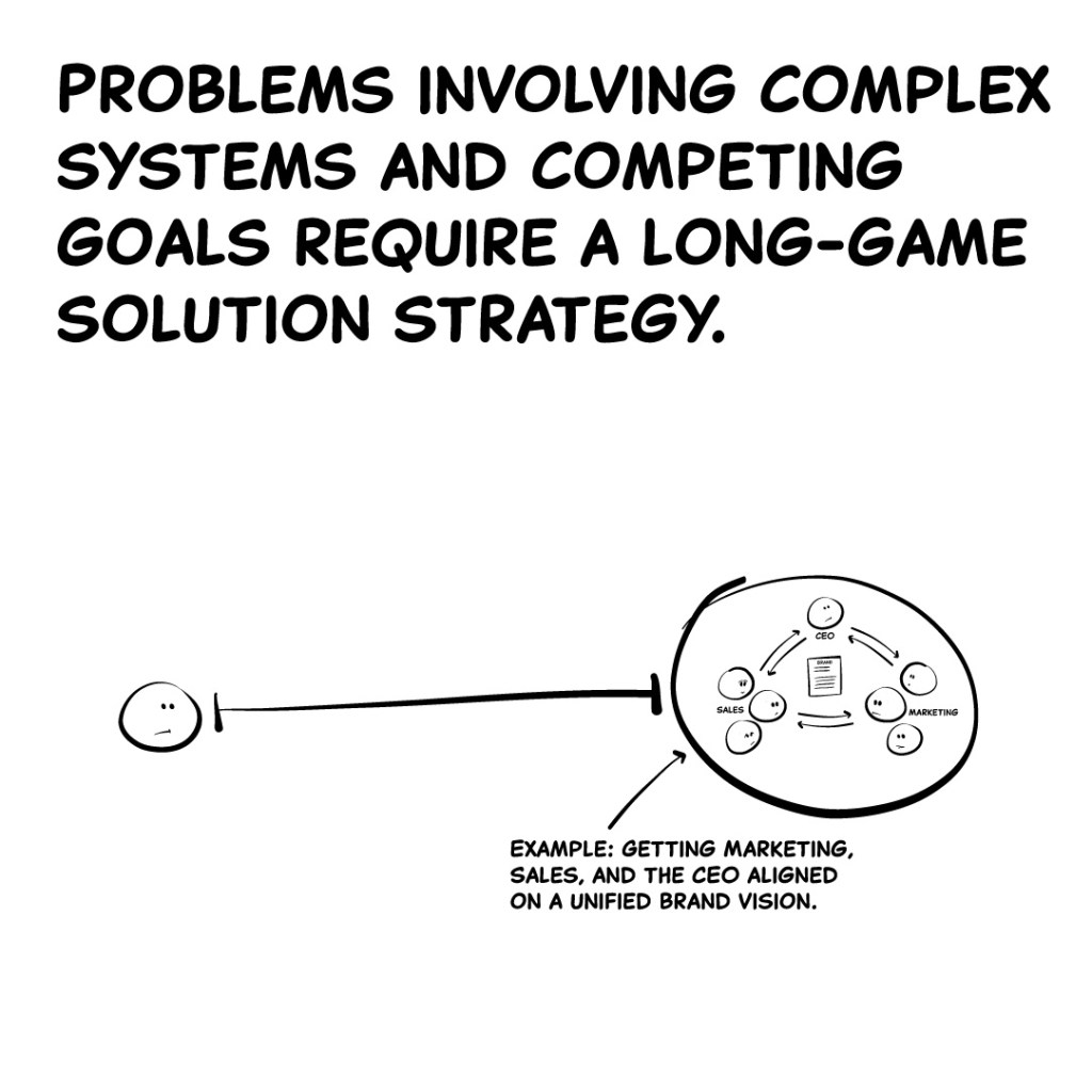 Problems involving complex systems and competing goals require a long-game solution strategy. A series of smaller, incremental moves based on a wider view of the problem.