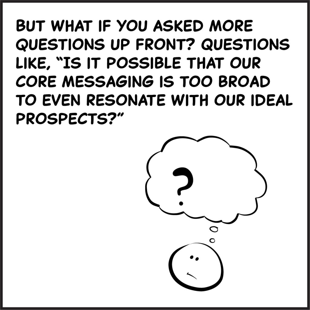 - “Is it possible that our core messaging is too broad to even resonate with our ideal prospects?”