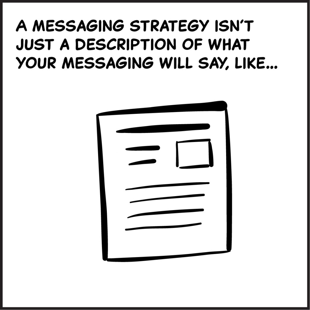 A messaging strategy isn’t just a description of what your messaging will say, like “We’ll highlight our amazing tech.” Or “We’ll focus on reaching SMB founders.”
