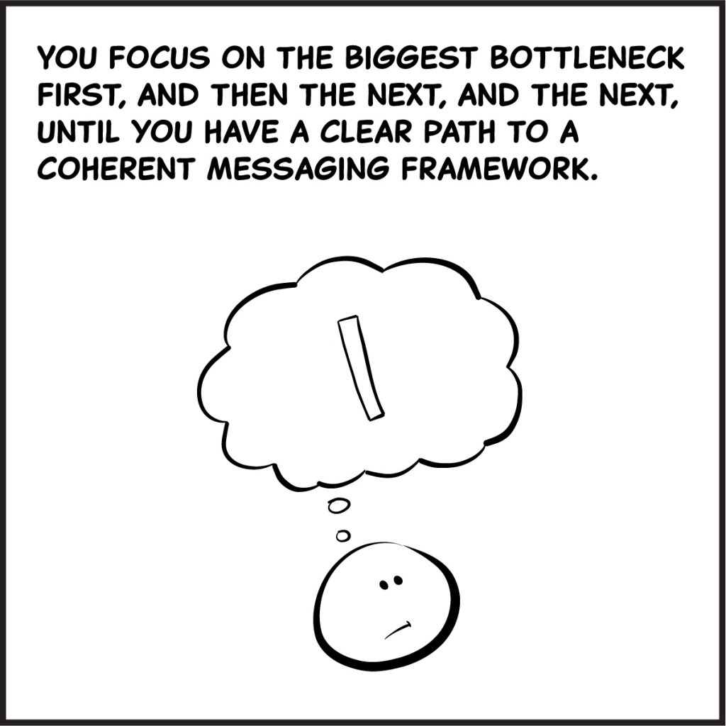 You focus on the biggest bottleneck first, and then the next, and the next, until you have a clear path to a coherent messaging framework. Only then do you actually focus on creating your messaging.